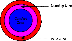 Atata timp cat ne aflam in zona de confort, ne este greu sa ne schimbam sau sa invatam, deoarece nu ne impinge nimic de la spate (nu ne motiveaza). Daca ne departam prea tare de zona de confort, ajungem in zona de teama, unde iar nu putem invata, de aceasta data din cauza discomfortului. Cand intram in zona de invatare, ne simtim putin stanjeniti, nu prea in largul nostru. Prin urmare, ne schimbam (invatam) pentru a ne integra.