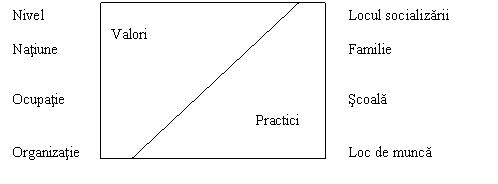 Urmarind Figura 2.3. remarcam introducerea culturii ocupationale alaturi de cea nationala si respectiv cea organizationala, aceasta presupunand atat valori cat si practici, intr-o proportie echilibrata. In fapt, ideea de baza rezultata in urma studiilor intreprinse este: "Culturile organizationale sunt un fenomen diferit de culturile nationale" (Hofstede, Fink, 2007, p. 15).