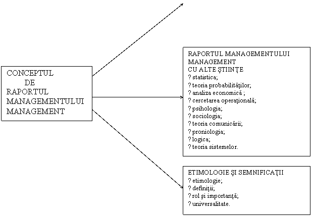 Putem spune ca, managementul este ansamblul activitatilor, disciplinelor, metodelor, tehnicilor, care inglobeaza sarcinile conducerii, gestiunii, administrarii si organizarii societatii comerciale (regie autonoma) si vizeaza ca prin adoptarea deciziilor optime in proiectarea si reglarea proceselor microeconomice, sa antreneze intregul colectiv de salariati pentru a intreprinde si a lucra cat mai profitabil, pentru a organiza schimbari capabile sa asigure unitatii un viitor trainic si eficace pe plan economic si social (figura 1).