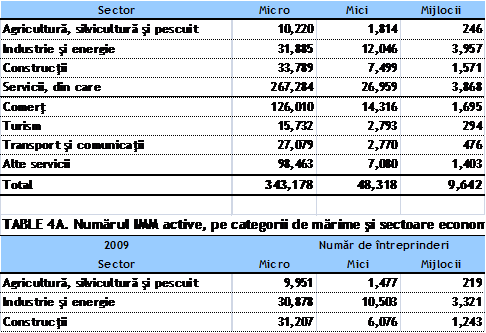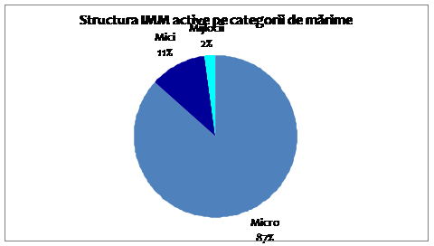 Din comparatia modului in care se distribuie pe categorii de marime numarul de IMM inregistrate si , respectiv numarul de IMM active la nivelul anului 2009 se poate observa faptul ca ponderea microintreprinderilor scade la 87%, in timp ce cea a intreprinderilor mici creste la 11%. In schimb, categoria de intreprinderi mijlocii isi conserva greutatea specifica la nivelul de 2% in cele doua situatii luate in analiza. Din aceste considerente cauzele inactivitatii unui procent insemnat de microintreprinderi 43% din cele cuprinse in baza de date a ONRC desi aceasta ar fi trebuit sa cuprinda in genere numai firmele active care au depus bilant avand o cifra de afaceri mai mare decat zero ar trebui sa faca subiectul unei cercetari calitative separate de profunzime prin sondarea unui esantion reprezentativ la scara nationala pe modelul Observatorului IMMurilor, cercetarea care se intreprinde la nivelul Uniunii Europene. Oricum, datele disponibile ilustreaza ca ratele de activitate cele mai scazute se intalnesc la microintreprinderile din sectorul Comert si, respectiv din Constructii