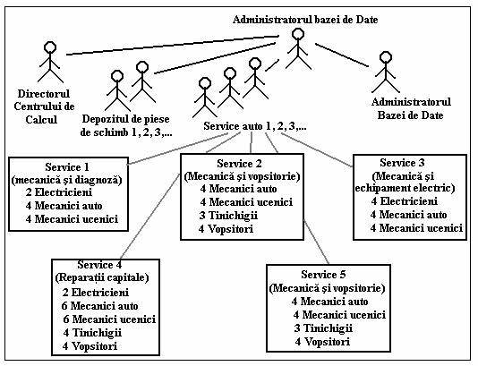 Personalul angajat in sistemul retelei de service-uri auto este repartizat la fiecare service dupa specificul acestuia. Sistemul expert trebuie sa gestioneze atat comenzile cat si disponibilul de forta de munca si resursele tehnice si tehnologice posibile (fig. 49).