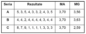 Cu cat dispersia unei serii de numere este mai mare, cu atat creste diferenta intre rezultatul mediei aritmetice si cel al mediei geometrice.