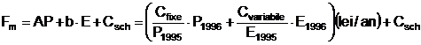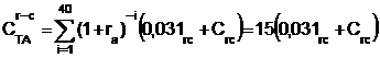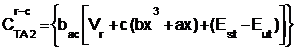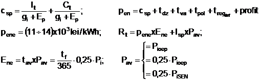 in care: CTAC = cheltuielile totale actualizate pe orizontul de prognoza; bac = binol de actualizare ; CPINS ; CPFLX = cheltuielile de prognoza la nivelul dezvoltarii instalatii lor si respectiv al fluxului scrise pentru nivelurile resurselor (RES) si a interfetei sistem - mediu (ISM); isp; ce = investitia specifica si costul energiei; Pp , Ep = puterea si energia prognozata pe orizontul (t); r = ritmul de crestere; a,b, c = constante ale sistemului.