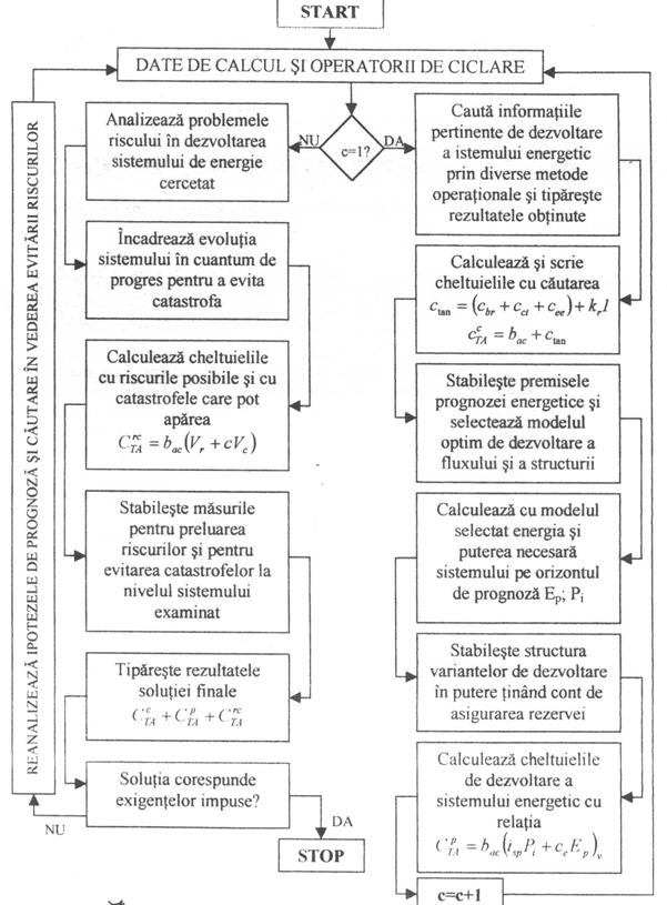 Solutia rezultata din aplicarea teoriei cautare - prognoza la dezvoltarea sistemelor de energie trebuie sa cuprinda si riscul. Riscul este maxim daca sistemul intra in zona catastrofei. Pe baza teoriei risc - catastrofa se studiaza problema trecerii sistemului energetic din starea de dezordine (catastrofa) in starea de ordine (cu risc predeterminat).