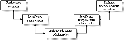 Ø proiectarea sistemului - cerintele deduse la faza anterioara se vor partitiona, stabilindu-se arhitectura generala a sistemului;