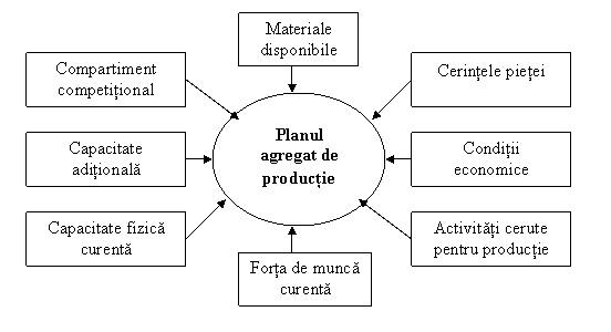 Punctul de pornire in elaborarea acestui plan il constituie nivelul cererii de produse, managementul urmand sa fundamenteze proportia in care productia realizata va acoperi aceasta cerere, astfel incat, sa se asigure rentabilitatea pe termen lung a intreprinderii. Problemele care apar sunt contradictorii. Pe de o parte acoperirea integrala a cererii determina de cele mai multe ori atragerea de noi resurse de productie, deci costuri suplimentare, iar pe de alta parte nesatisfacerea cererii la un moment dat poate determina pierderea unui segment important de piata, cu efecte negative asupra rentabilitatii pe termen lung. Din aceste considerente, rezulta necesitatea de a stabili programul agregat intre cele doua limite, tinand cont de costurile de productie si de o serie de factori prezentati in figura 2.3.