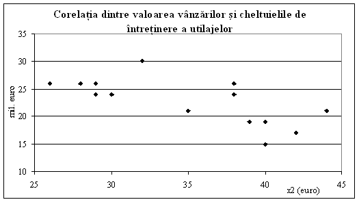 In urma analizei de regresie, se asteapta un coeficient negativ pentru variabila explicativa a cheltuielilor de intretinere a utilajelor, x2 si coeficienti pozitivi pentru celelalte doua variabile independente x1 si x3.