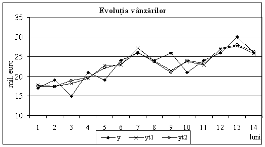 Figura 2.19. Evolutia vanzarilor si ajustarea lor