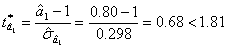 b) Coeficientul a1 este semnificativ mai mic decat 1?