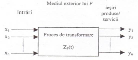 Sistemul este conceput ca o structura care implica preluarea la un moment dat t0 a unor marimi de intrare (x1. xn) din mediul exterior, transformarea lor in altele (diferite de cele de intrare) si redarea lor la un moment ti sub forma de marimi de iesire (y1. yn) - produse si sau servicii (Fig. 1.1.).
