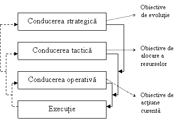 In organizatie exista niveluri succesive de obiective care dau nastere la actiuni specifice, realizabile la niveluri agregate de conducere, fiecare nivel determinand obiectivele nivelului inferior si controland, prin conexiunea inversa, realizarea lor (buclele de autoreglare I, II si III).
