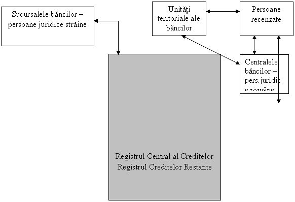Fluxul transmiterii si inscrierii informatiei de risc bancar in Registrul central al creditelor este prezentat in urmatoarea diagrama: