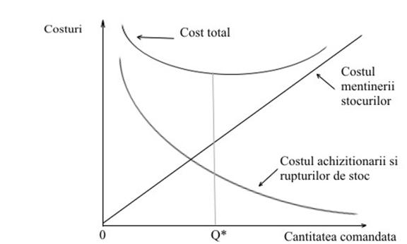 In procesul de stabilire a politicii organizatiei in domeniul stocurilor, este necesara considerarea relatiilor conflictuale dintre aceste categorii de stocuri (figura 2). De exemplu , obiectivul de reducere a costurilor de mentinere a stocurilor poate determina o crestere a frecventei rupturilor de stoc, iar scaderea costurilor de achizitionare a marfurilor prin reducerea numarului comenzilor poate avea ca efect cresterea costurilor de mentinere a stocurilor.