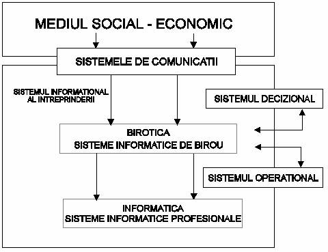 Din figura rezulta o serie de concluzii referitoare la rolul biroticii in activitatea unei intreprinderii sau organizatii si raporturile acesteia cu sistemele decizionale si operationale, pe de o parte, cu sistemele informatice si de comunicatii, pe de alta parte.