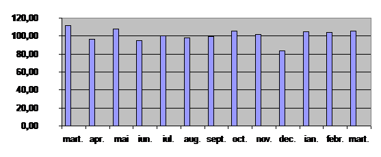 Cresterea productiei industriale in primele trei luni ale anului 2002 este inferioara celei din aceeasi perioada a anului trecut.
