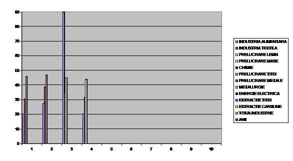 Scaderile mari ale productiilor ramurilor industriale in perioada 1990 - 2001 releva urmatoarele particularitati:
