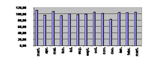 a) productia marfa in anul 2001 fata de 1998, luat ca an de referinta in preturi comparate, reprezinta 100%.