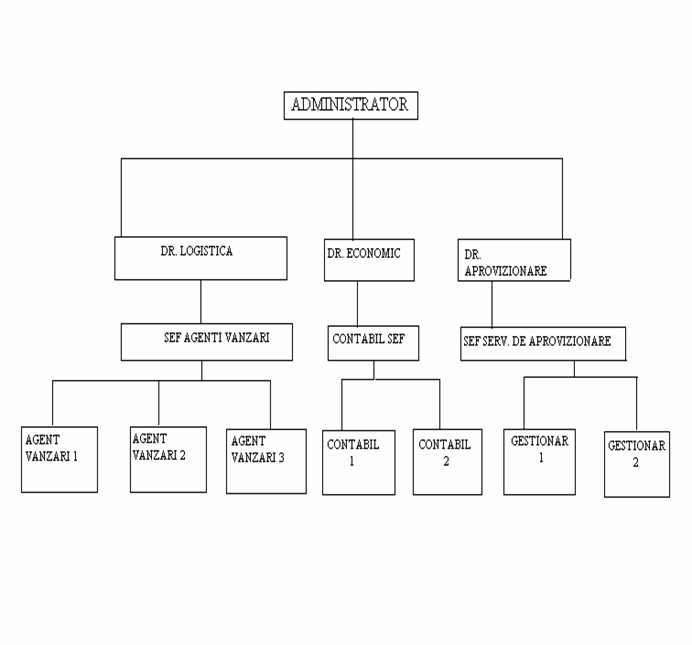 Director vanzari are in subordine 3 agenti de vanzari, care se ocupa de comercializarea propriu - zisa a produselor in punctele de lucru ale societatii.