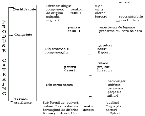Multiplele avantaje ale produselor catering le ofera acestora o pozitie distincta in ansamblul marfurilor alimentare, determinand ascensiunea lor pe plan international, atat din punct de vedere al volumului ofertei cat si din plan international, atat din punct de vedere al volumului ofertei cat si din punct de vedere al structurii sortimentale. Mari firme specializate in productia de alimente prelucrate cum sunt Nestle, Magi, Unilever, Knorr si altele, au permanent in nomenclatorul ofertei lor zeci de sortimente de produse tip catering.