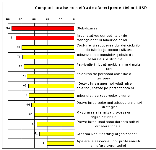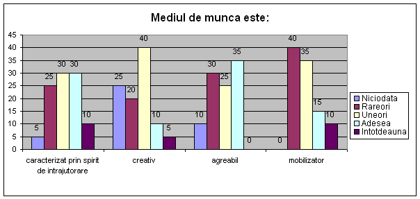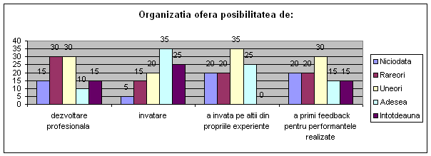 - perceptiile respondentilor privind punctele tari si punctele slabe ale culturii si managementului firmei;
