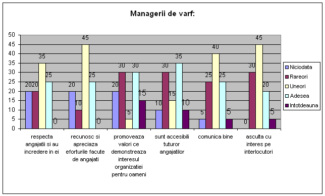 Valorile organizationale sunt promovate de managerii superiori |