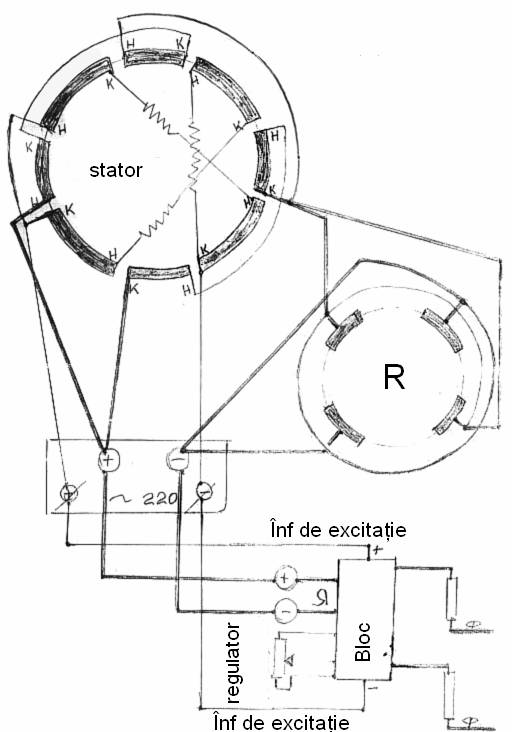 Schema de conectare polilor magnetici a masinii de curent continuu,120-160kW,n=1900rot/min.