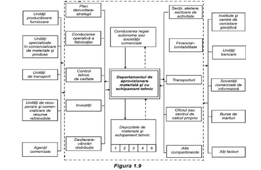 Toate aceste relatii (schema de principiu se prezinta in figura 1.9) sunt orientate in sensul: asigurarii integrale, la termenele, locul si momentele prevazute, cu cost minim, a bazei materiale, in volumul si structura strict corelate cu cea a consumului productiv si neproductiv; folosirii cu maxima eficienta a resurselor aprovizionate; incadrarii in consumurile specifice din documentatiile tehnico-economice si stocurile prestabilite; valorificarii complete si eficiente a materiilor prime s.a.