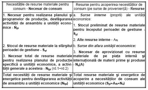 Asa cum s-a mentionat mai inainte, cea de a doua parte a planului si programelor de aprovizionare a unitatilor economice evidentiaza 'resursele' - pe surse de provenienta - care pot fi actionate pentru acoperirea necesitatilor de materiale prezentate mai sus. Aceste resurse, care sunt asigurabile din surse interne si din afara unitatii, se exprima prin 'stocul preliminat la inceputul anului de plan', 'alte resurse interne' si 'necesarul de aprovizionat'; si acesti indicatori se estimeaza, firesc, anticipat perioadei la care se refera si se adapteaza ulterior (inclusiv pe parcursul perioadei de gestiune) in functie de conditiile noi care apar in unitatea economica si in afara ei.