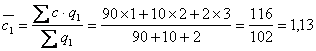 productiei fiecarei calitati fata de totalul productiei, coeficientul mediu de
