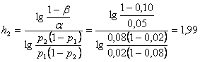 Intocmim un plan prin sondaj dublu considerand p1 = 0,02 ; p2 = 0,08 ; α = 0,05 ; β=0,10 si n0 = 205 (rezultat prin trunchiere) .