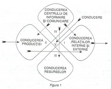 In acest sens, obiectivele generale ale organizatiei trebuie sa fie satisfacerea nevoilor pietei - functia tipica de marketing (fig. 1, l). Cand obiectivele au fost stabi!ite, este necesar a se desfasura activitatiie privind conducerea efectiva in organizatie, pentru atingerea obiectivelor (fig.1, 11). Aceasta presupune organizarea tuturor resurselor si repartizarea procesarii activitatii (fig.1, 111) si prelucrarea in "timp real" a tuturor informatiilor din interiorul si exteriorul organizatiei (fig.1, IV). Top managementul este asigurat prin pozitionarea deopotriva "relativ izolata" in varful piramidei si in centrul organizatiei (fig. 1, V). Aceasta configuratie de "frunza de trifoi" a organizatiei da o flexibilitate maxima structurii de organizare si conducere in economia de piata, cand "situatiile se complica, se modifica, viteza de reactie este mai mare si raspunsuriie birocratice nu mai ajung". Astazi, industria este fata in fata cu procesul de restructurare interna si externa, care are ca obiectiv crearea si practicarea unor metode de management flexibil, activ si participativ.