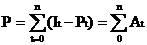 Profitul total (P) pentru o constructie realizata in n perioade este echivalent cu fluxul banesc cumulat net la t = n si este dat de formula: