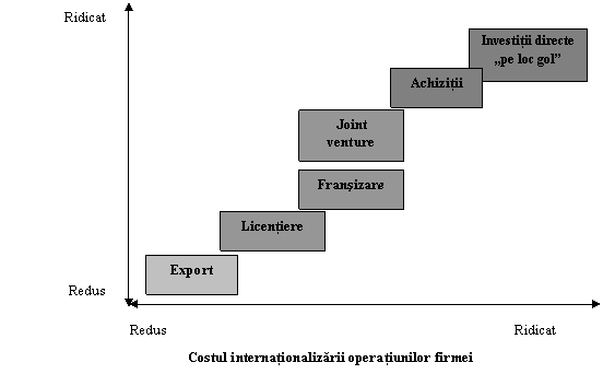 Figura nr. 6. Modalitati prin care o firma isi poate internationaliza afacerile; caracteristici pentru fiecare tip de internationalizare