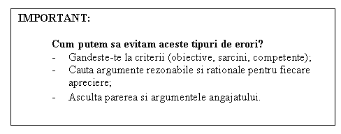 Fiecare dintre noi avem tendinta de a face erori in evaluarea performantelor. Evaluarea este un proces ce presupune interactiunea intre persoane, de aici implicand si un grad de subiectivitate.