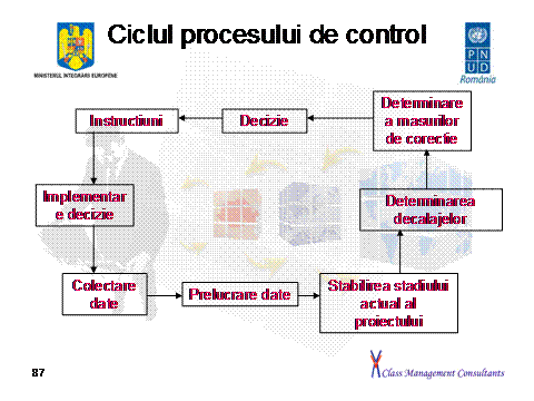 Evaluarea finala - la finele proiectului, se asambleaza documentarea asupra resurselor folosite, rezultatele si evolutia proiectului. Se genereaza invataminte pentru viitoare proiecte.