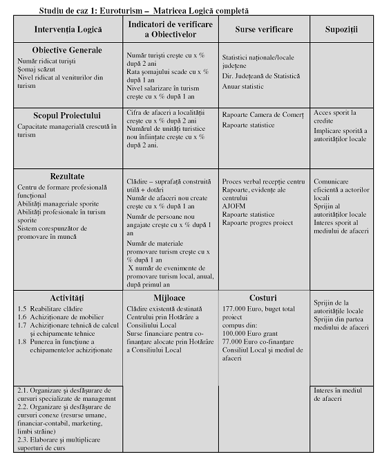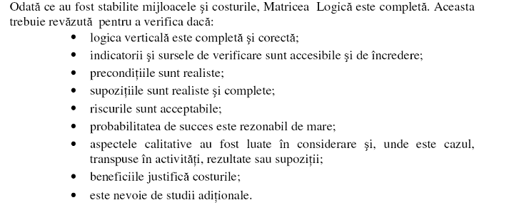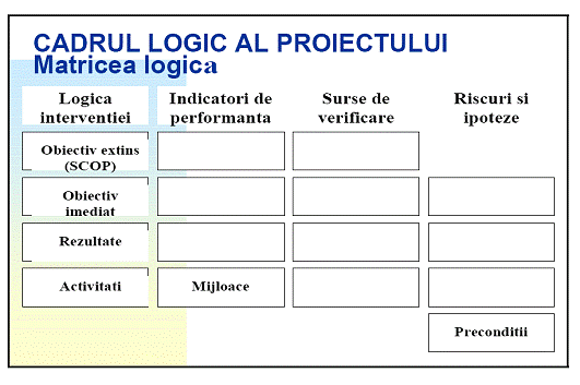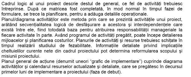 implementarea sa. In aceasta faza se definitiveaza cadrul logic (matricea logica), se formuleaza si se