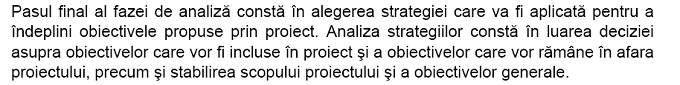 identificati si analizati intr-un stadiu incipient al elaborarii proiectului.