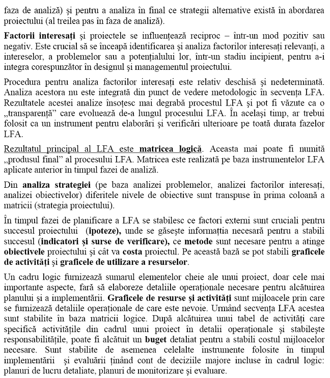 (Logical Framework Approach - LFA) este un set de instrumente pentru designul