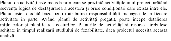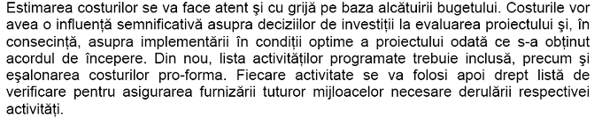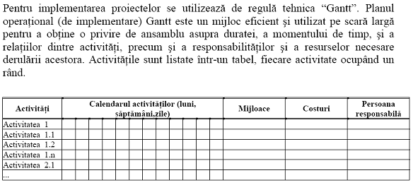 activitatilor prevazute in proiect. Din acest punct de vedere, se procedeaza ca
