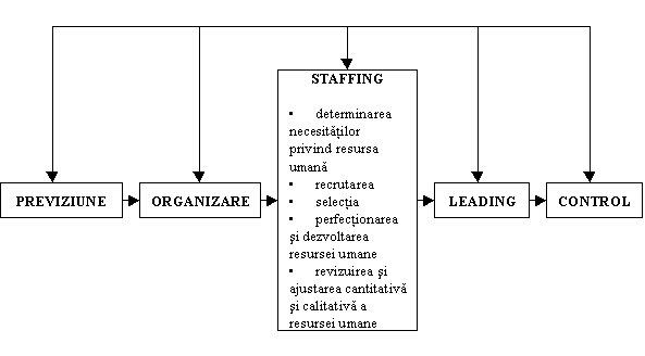 - functia de staffing, ca o continuare a functiei de organizare, tot in faza operationala a procesului de management;