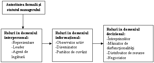 In urma cercetarilor intreprinse de Henry Mintzberg, s-a constatat ca profesia de manager poate fi descrisa si evaluata mult mai bine prin "rolurile" indeplinite de aceasta categorie de personal, asa cum rezulta din figura 1