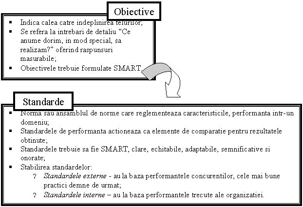 Avind in vedere ca evaluarea se aplica in raport cu proiectele, planurile, programele elaborate in cadrul organizatiei, este nevoie de criterii de evaluare pentru toate elementele cuprinse in documentele proiective: obiective, resurse, actiuni, strategii de aplicare.