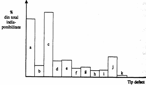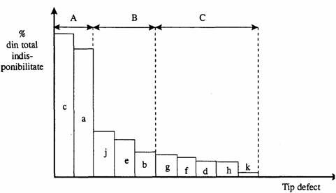 Asa cum rezulta din Figura 8, defectiunile de tip "a' si "c' (20% din total) corespund unui procent semnificativ din totalul indisponibilitatii, ca urmare, indepartarea lor va conduce la ameliorarea de fond a activitatii de mentenanta.