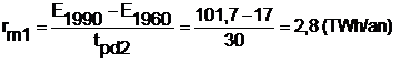 Eef = (8760 - trep - tav) x 0,6 x Pi = 5760 x 0,6 x 2310 x 103 = 7,98 TWh; (39)