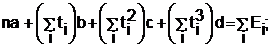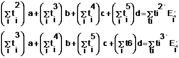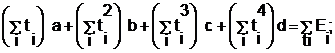 1240a + 14400b + 178312c + 2299200d = 60115,7 (8)
