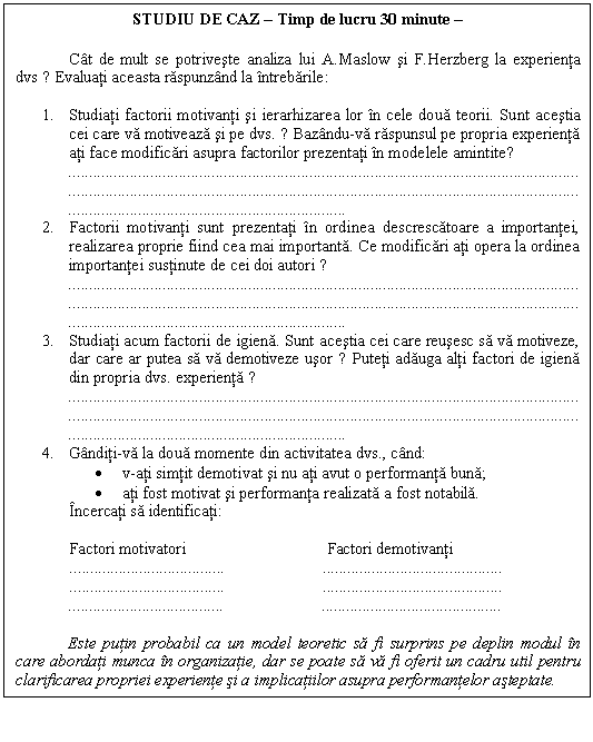8. Care sunt punctele forte ale teoriilor bazate pe nevoile umane si satisfacerea lor. Incercati o analiza comparativa a teoriei nevoilor lui A.Maslow cu teoria bifactoriala abordata de F.Heryberg.