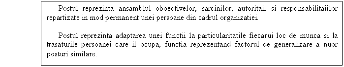 Specificatia postului deriva din analiza postului, este un rezultat de baza al acesteia si se determina din descrierea postului.