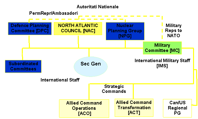 Aceasta organizare pe comitete reprezinta mecanismul de baza care ofera Aliantei mijloacele de consultare si de adoptare de decizii, asigurand reprezentarea fiecarui stat membru la toate nivelele si in toate domeniile de activitate ale NATO.