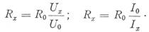 Daca se masoara curentii cu doua ampermetre, se obtin I0 si lx. Relatiile de calcul al rezistentei Rx au urmatoarea structura: