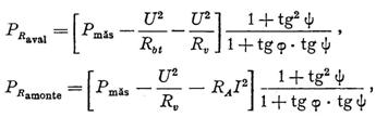 Puterile debitate de generator, PG, in montaj aval, respectiv amonte, se calculeaza astfel: